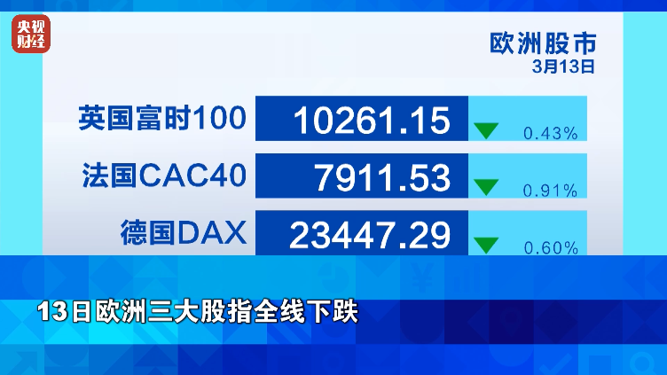 13日欧洲三大股指全线下降